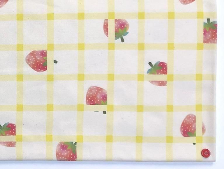 幻想的な色合いのイチゴに、やわらかな黄色のチェック模様